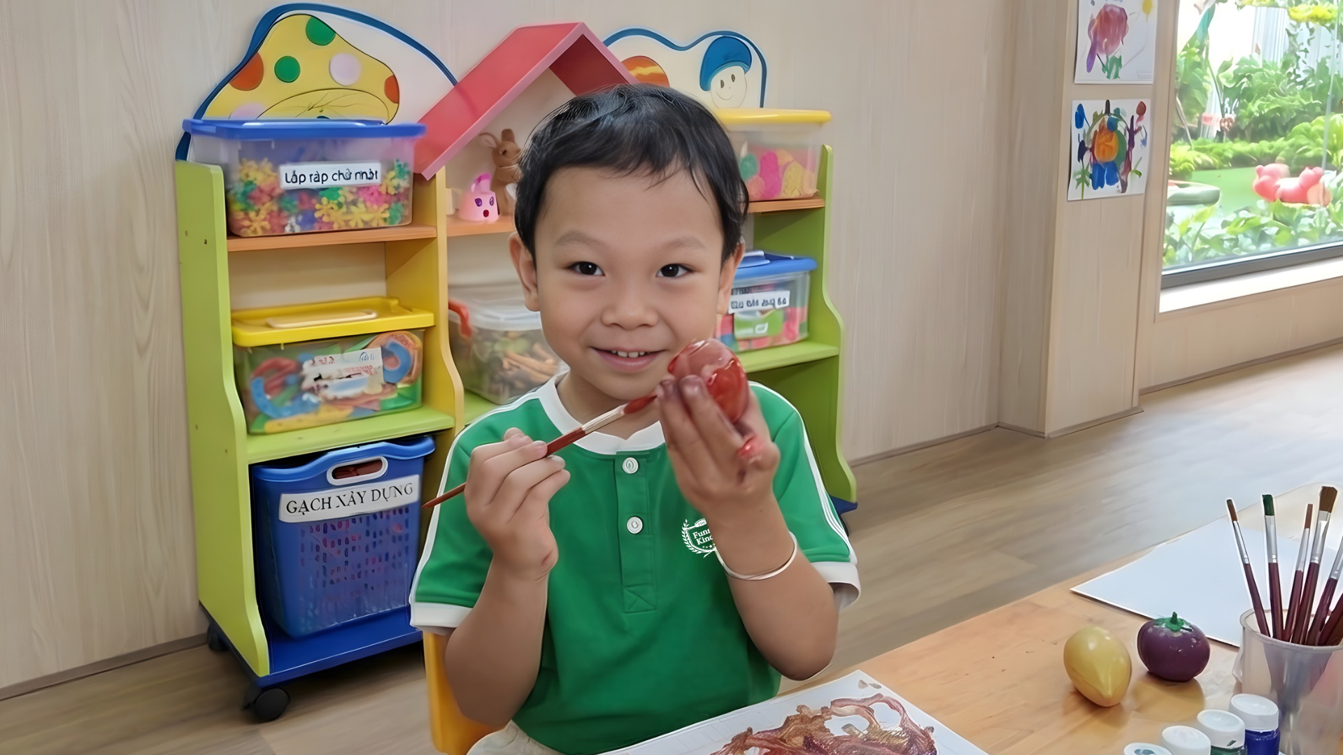 Hoạt động trang trí trứng không chỉ là trò chơi, mà là không gian để các "họa sĩ nhí" tại The Funny Kindy tự do bộc lộ cá tính. Qua việc vẽ trên giấy và tạo hình trên trứng thật, các con học được cách phối hợp màu sắc, rèn luyện sự khéo léo của đôi tay và đặc biệt là tư duy sáng tạo không giới hạn. Mỗi quả trứng là một thế giới riêng, nơi con được tự tin thể hiện trí tưởng tượng của mình. Niềm vui càng trọn vẹn hơn khi các con được thưởng thức chính thành quả mình làm ra, giúp con thêm tự hào và yêu thích việc khám phá. Cảm ơn Ba Mẹ đã cùng nhà trường chắp cánh cho những tâm hồn đầy sắc màu của các con!