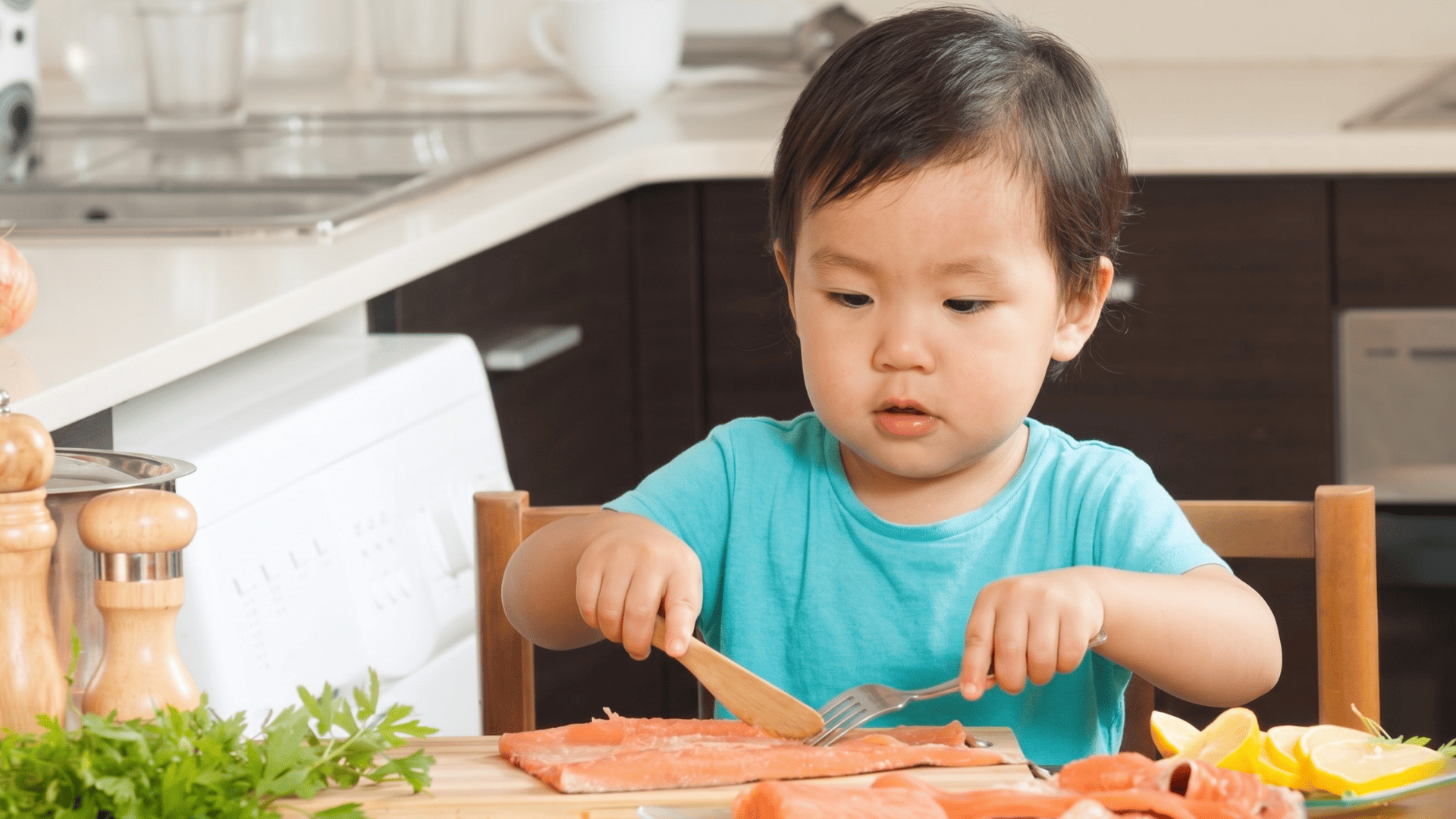 Ba mẹ có thể làm ruốc cá hồi ăn kèm cháo, cá hồi áp chảo sốt bơ tỏi hoặc món cơm nắm cá hồi xinh xắn để kích thích vị giác của con.